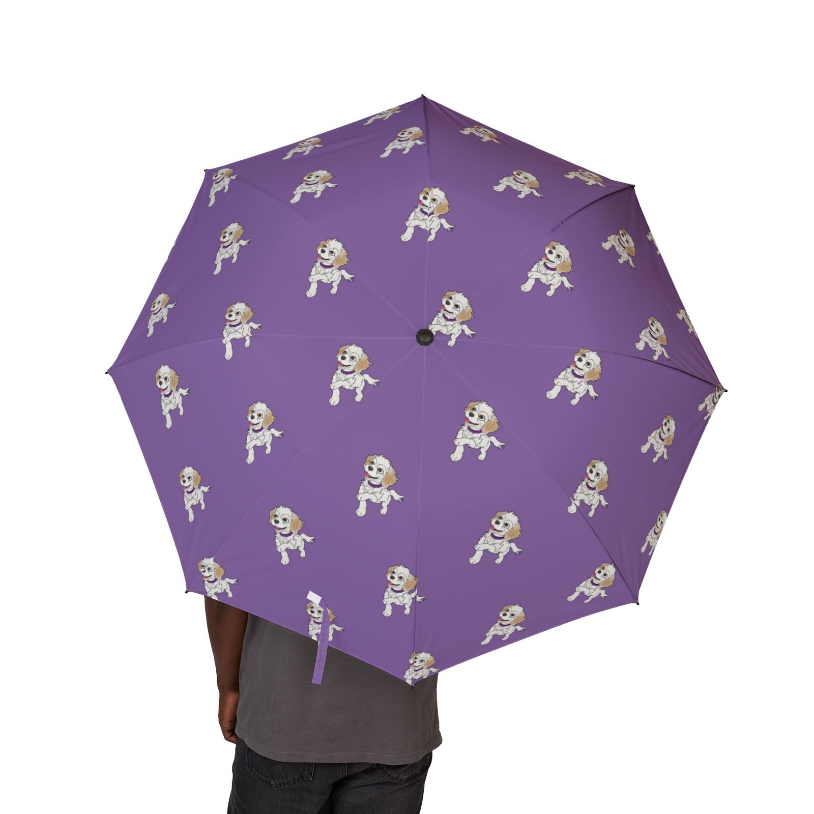 Bright sky-blue umbrella dotted with small, hand-drawn puffin motifs — cheerful and quietly whimsical. The semi-automatic frame opens with one hand in a second, so you catch the shelter before the first drop hits. The 100% polyester pongee canopy is waterproof and printed with long-lasting sublimation ink, so the colors stay vibrant through daily use. Eight sturdy fiber ribs and a comfortable rubber handle give reliable support and a steady grip, while the matching sleeve, wrist strap, and Velcro tie keep it neat between storms. This umbrella slips easily into a commuter bag and brings a little coastal charm to rainy walks, market runs, and travel days.